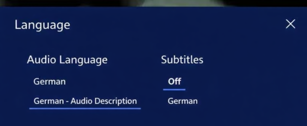 The YouTube player, for example, doesn’t currently meet this criterion. While the player allows you to twitch between audio tracks, it requires one or two more clicks than switching subtitles. Whether this is actually a problem is still unclear. However, on YouTube, you can work around this by uploading the video once with and once without audio description and linking to the other version in the video descriptions.