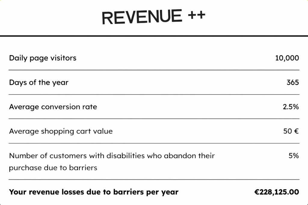 To better illustrate this connection, a Microsoft study on accessibility calculated how a non-accessible website can affect annual revenue: