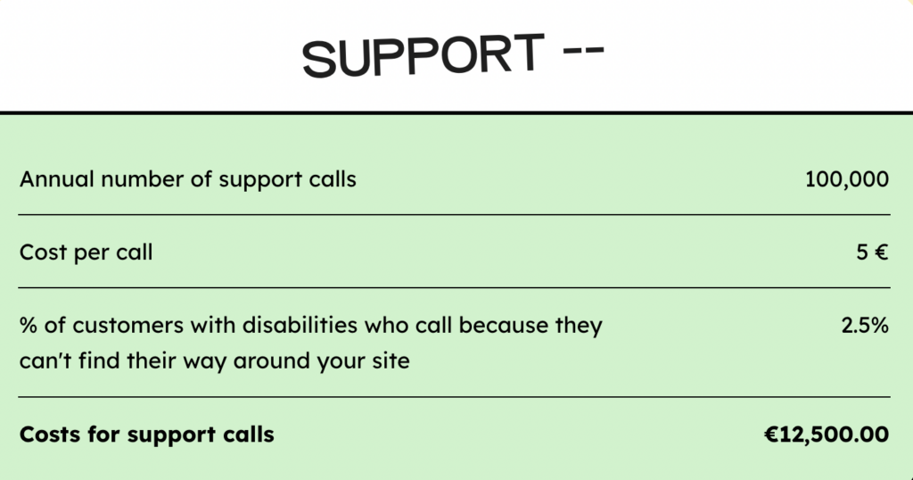 By switching to an accessible website, companies can reduce the number of support requests and save time and resources.